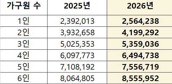 2026년 기준 중위소득은 4인 가구를 기준으로