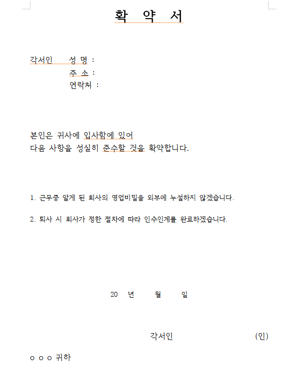 확약서 작성 기본 구성