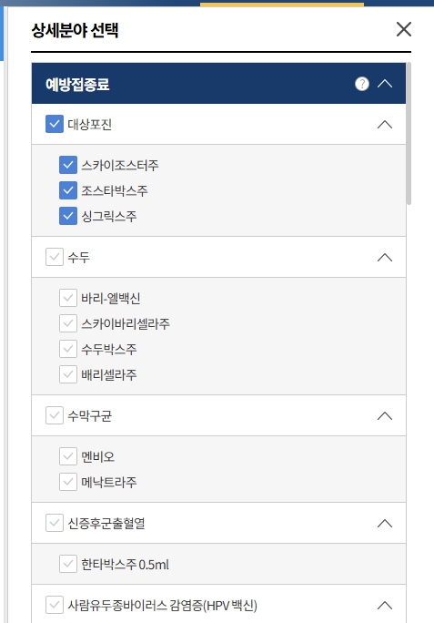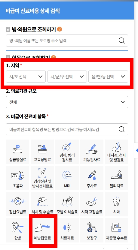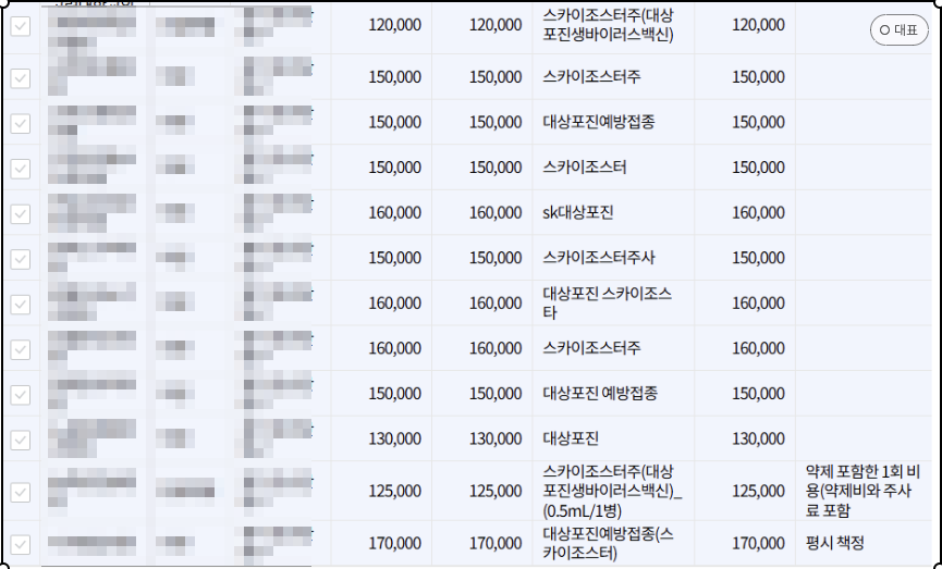 건강보험 심사평가원> 비급여 진료비용 정보 > 비급여 진료비용 상세검색 > 예방접종 > 대상포진