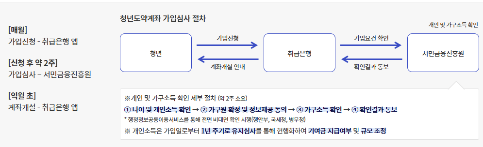 매월 협약은행 앱에서 신청해 가입요건 확인절차를 거쳐 계좌를 개설할 수 있으며