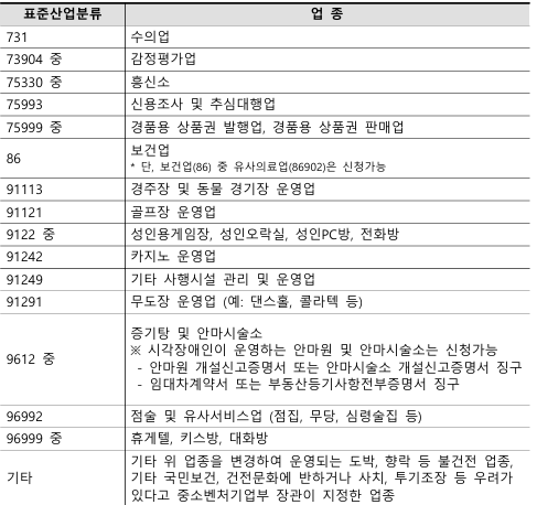 정책자금 지원 제외 업종