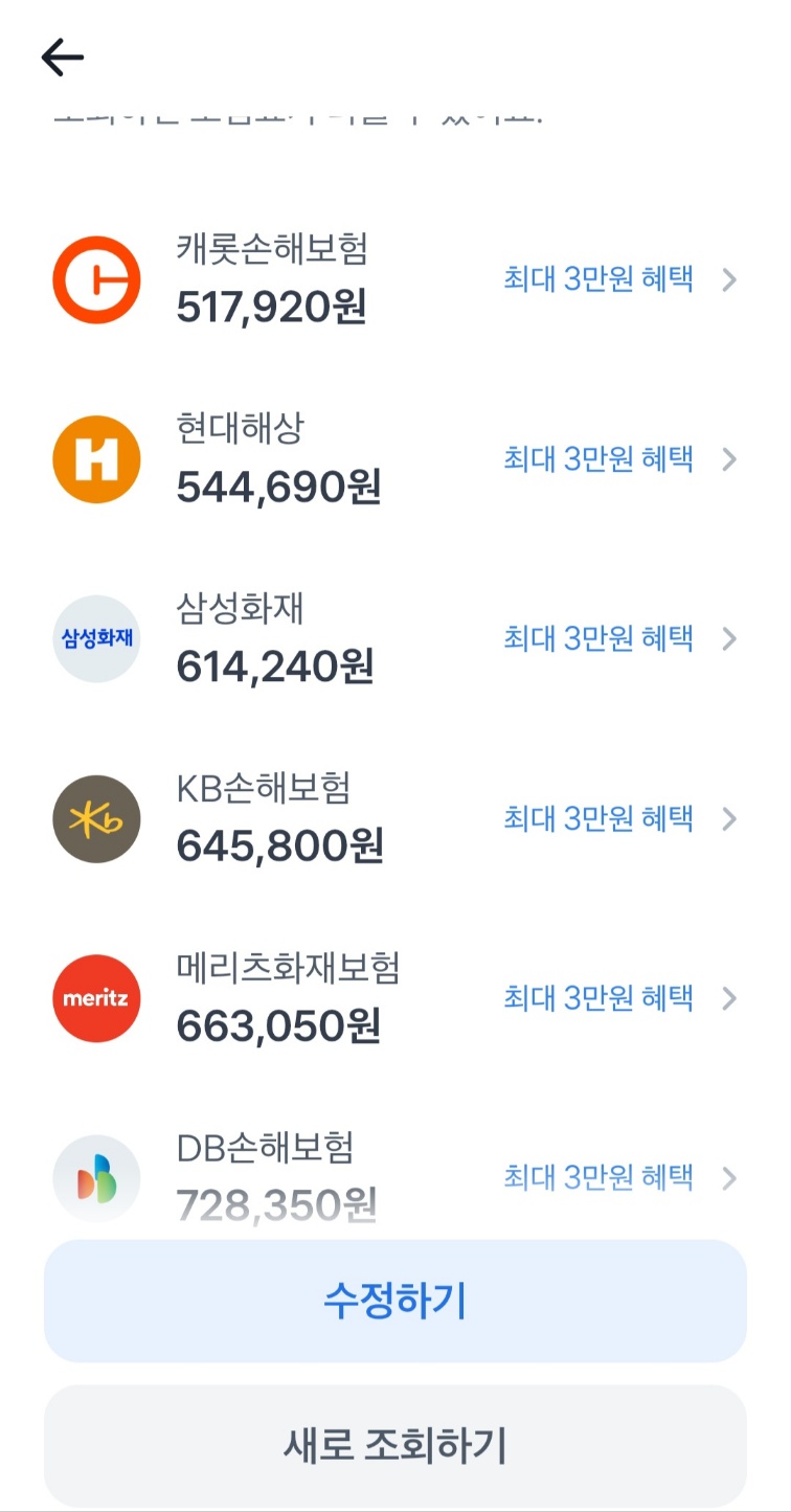 이야~ 토스에서 안되는게 뭐 있니? 보험까지 다 비교해주네요