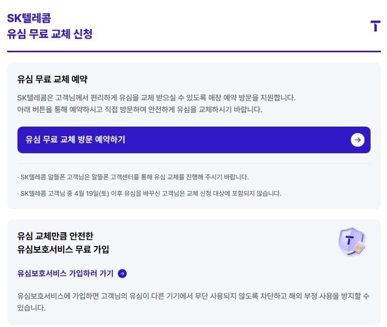 1. SK 유심무료 교체 방법