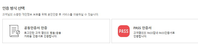 인증방식: 신용카드.카드사홈페이지,아이핀 중 택1