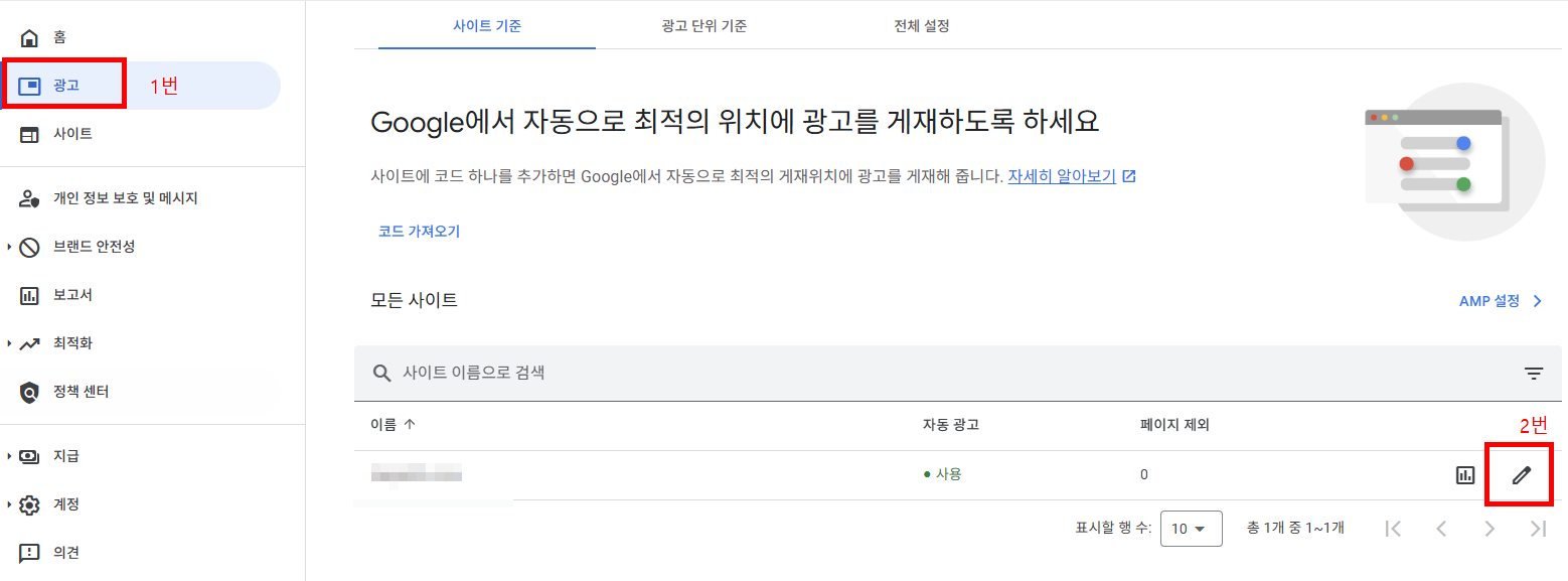 - 사이트별로 ‘연필 아이콘’ 클릭