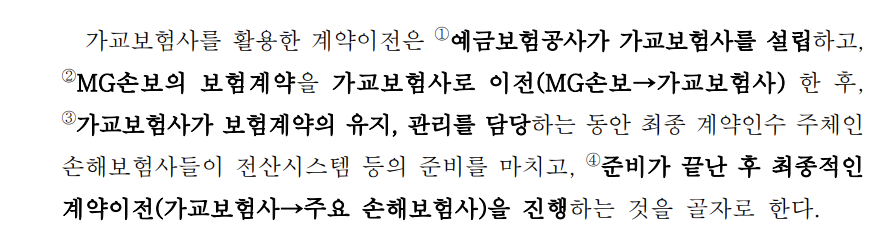 • MG손보의 기존 보험계약을 조건 변경 없이 가교보험사로 이전
