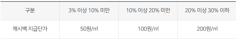 전년 동기간 대비 3%* 이상 절감 시 절감율별 차등 지급하며, 절감율이 높을수록 캐시백 지급단가가 높아집니다.