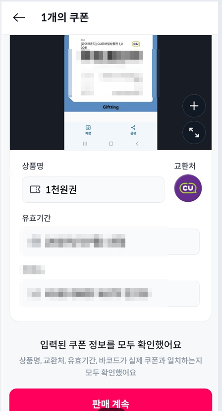 판매할 기프티콘 이미지를 사진첩에서 선택해 첨부합니다.
