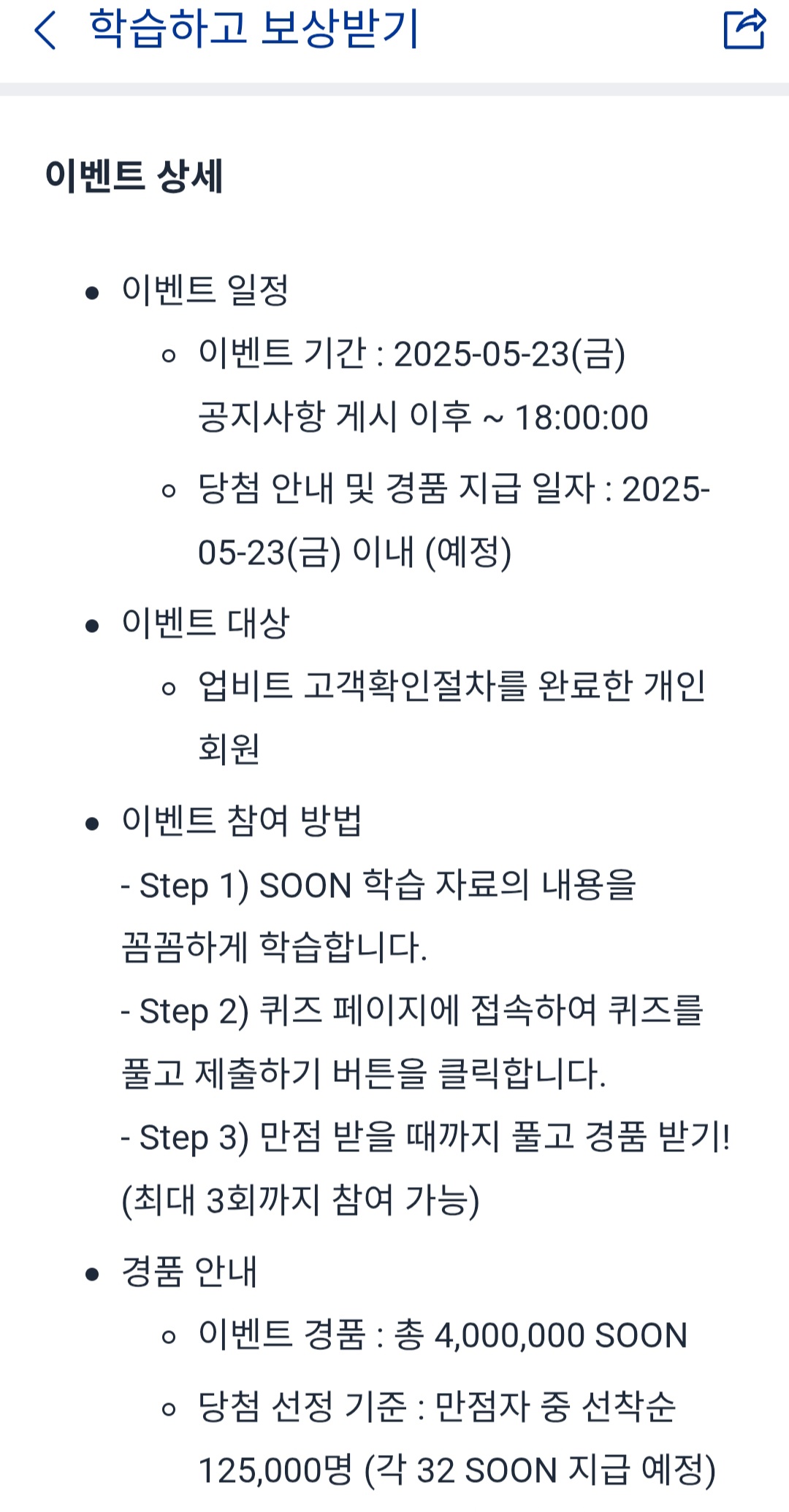| 빗썸 쑨 (SOON) 에어드랍 5.23~5.25 (1) | 2025.05.23 |