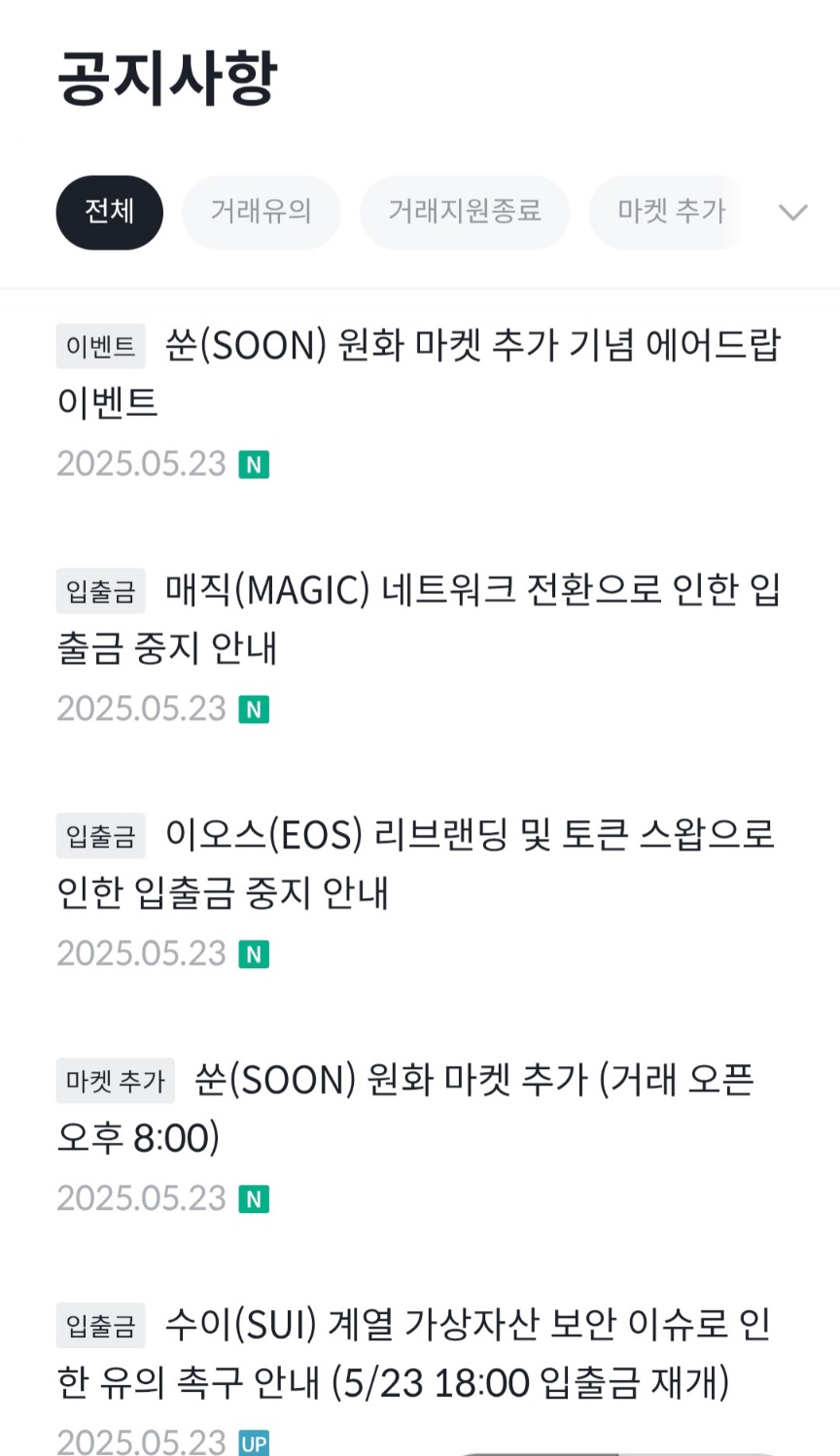 | 빗썸 쑨 (SOON) 에어드랍 5.23~5.25 (1) | 2025.05.23 |