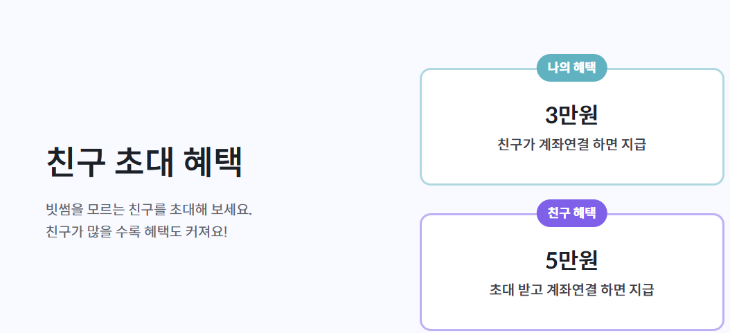 추천인 (기존회원)  :친구가 계좌 연결하면  3만 원 지급